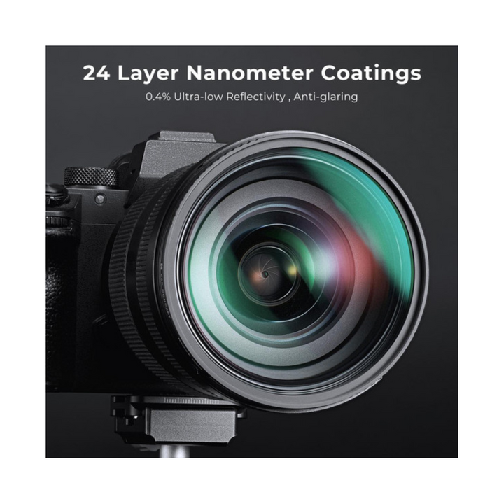 The K&F Concept Black Mist 1/4 A-Series filter adds cinematic softness to highlights and reduces overall contrast without sacrificing detail. Perfect for portraits and video, this filter features optical glass, a slim aluminum frame, and a multi-coated surface for clarity and durability.