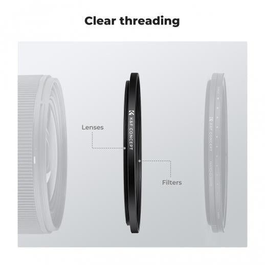 K&F Concept 49–52mm Step Up Ring 2-Pack + Cleaning Cloth