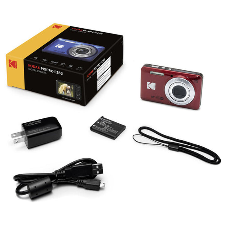 Kodak PIXPRO FZ55 Digital Camera – 20 MP 5× Optical Zoom, Red