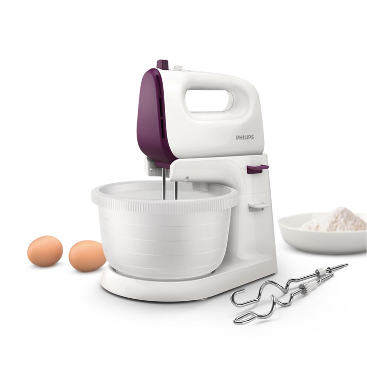 The Philips HR3745/11 is a compact stand mixer combining convenience with performance. Its 400 W motor and 3 L auto-driven bowl are ideal for baking, whipping, and dough preparation in small kitchens.