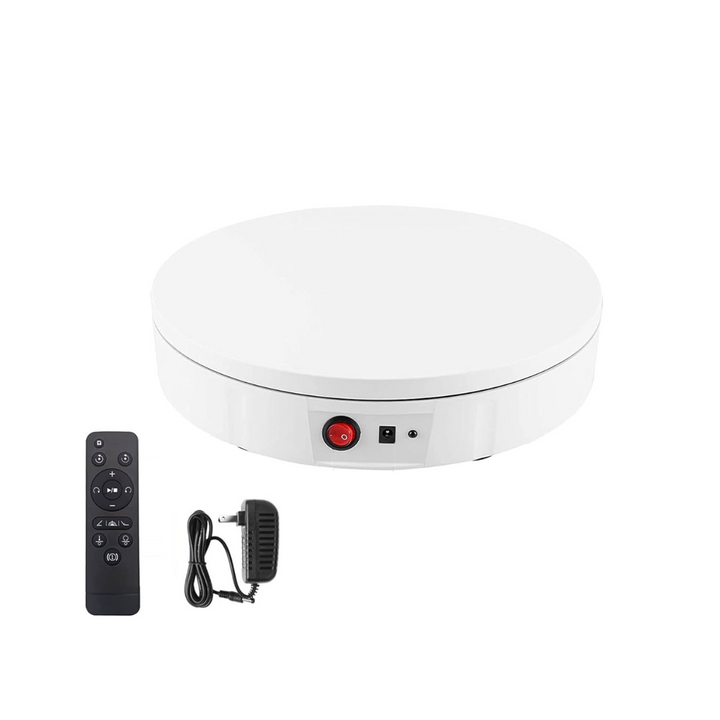 Compact and smooth 360° rotating turntable with a 30 cm diameter—perfect for product photography, videos, and showcasing small to medium items.