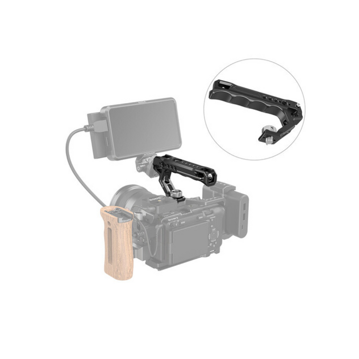 The SmallRig 2165C Top Handle provides a strong, ergonomic grip for camera rigs with ARRI-style mounts. Built for handheld stability and easy accessory integration, it features multiple mounting points and a durable aluminum design—ideal for professional video setups.