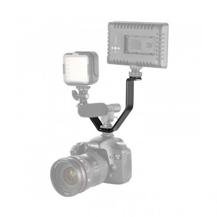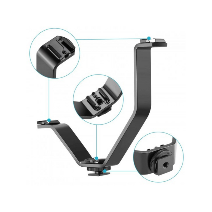 Enhance your camera rig with the Triple V-shape bracket—an essential accessory for mounting multiple devices. Perfect for vloggers and filmmakers, it offers three cold shoe mounts in a compact V-configuration.